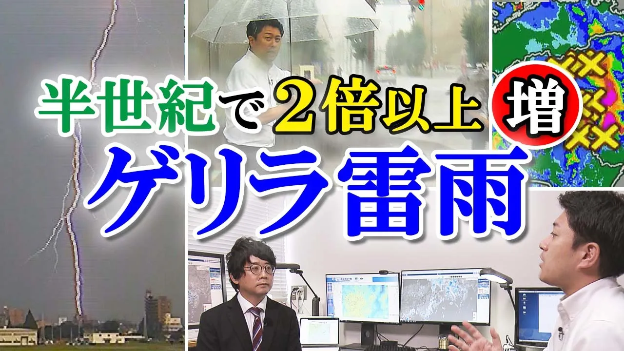 東海地方でも相次いでいるゲリラ雷雨。夏が終わっても警戒が必要だと専門家は話します。 「名鉄小牧駅前です。一気に雨が強くなってきました。交差点のあたり、水たまりを打つ雨の勢いがすごいです」(竹田基起アナウンサー) 21日から週は、天気の急変による大雨や落雷が各地で相次ぎました。 愛知県・豊山町の県営名古屋空港では22日、空は黒い雲に覆われ轟音ともに何本もの白い稲光が…。 「すごい雷で怖かったよ」(あま市民) 22日、あま市付近では午後3時10分までの1時間に約100mmの猛烈な雨が降ったとみられ、記録的短時間大雨情報が発表されました。 岐阜大学応用気象研究センターの吉野純センター長は半世紀前に比べ「ゲリラ雷雨は2倍以上に増えている」と話します。 「台風7号が去りました。ただ、その後急な雨や雷が今週かなり発生しています」(竹田アナウンサー) 「夏の天候をもたらす太平洋高気圧の位置に原因があると思われます。現在太平洋高気圧は日本の東の海上に中心があります。太平洋高気圧の周りには時計回りの風が吹いているんですが、その風に流されるように、南から湿った暖かい空気が流れ込みやすい状態が続いている。また8月下旬ということでまだ日差しが強いので、日中は大気の状態が不安定になりゲリラ雷雨が発生しやすい状態に」(岐阜大学 応用気象研究センター 吉野純センター長) 今週は日本の東側にずっと太平洋高気圧があり、南から暖かく湿った空気が流れ込んでいる影響で、大気の状態が不安定になっているといいます。 Q.大気の状態が不安定というのは、そもそもどういう状態なんですか?(竹田アナウンサー) 「下の空気が暖かく、上の空気が冷たいという状態。上の冷たい空気は重たい空気、下の暖かい空気は軽い空気。軽い空気の上に重たい空気があるのは不安定な状態で、重たい空気が下に落ちて、軽い空気が上がり対流現象が起こる。それによって積乱雲が発生する」(吉野センター長) また、ウェザーニュースによるゲリラ雷雨発生回数の予測によると、全体の回数は去年より少ないものの、8月下旬から9月上旬にかけた発生回数は前年を上回るとみられています。 Q.いつぐらいまでゲリラ雷雨に注意が必要なんでしょうか?(竹田アナウンサー) 「一般的にはゲリラ雷雨のような、いわゆる夕立的な雨の降り方は8月の終わりごろぐらいまでで終わってしまうことが多いが、残暑が厳しいという長期予報も出ていてこの状況はしばらく続くのではないか。とりわけ8月下旬~9月上旬はゲリラ雷雨が起こりやすい状況が続くと予想。今年はそれが9月までということで、長引きそうな予想になっています。そういった意味では異常なことであるということは間違いないと思う」(吉野センター長)