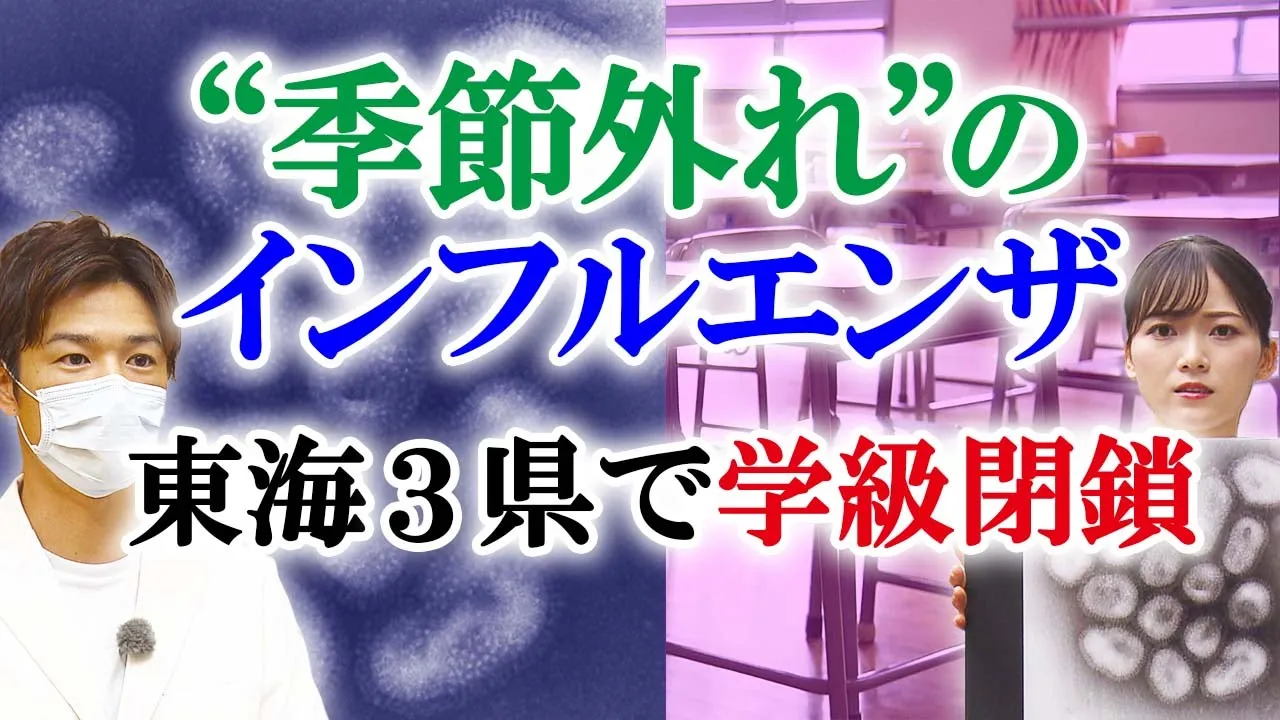 各地で集団感染が確認されている季節外れのインフルエンザ。なぜ、いま増えているのでしょうか?南雲穂波アナウンサーが医師に聞きました。 「まだまだ残暑が厳しいですが、季節外れともいえるインフルエンザで学級閉鎖が相次いでいます」(南雲アナウンサー) インフルエンザといえば寒さが本格的になる11月下旬から始まり、1月下旬から2月上旬にピークを迎え、3月ごろまで続く感染症です。 そんなインフルエンザが夏休みが明けた今、この地方でも確認され、学級閉鎖が相次いでいます。 名古屋市では熱田区にある特別支援学校の高校3年生の1クラス、岐阜県では可児市の小学校、笠松町の高校でそれぞれ1クラス、三重県では伊賀市の小学校で2クラス、四日市市の小学校でも1クラスが学級閉鎖となりました。 桑名市と津市の小学校では3学年で感染が広がっていて、8日まで学年閉鎖となっています。 今はまだ残暑が厳しいのに、なぜインフルエンザは増えているのでしょうか? 名古屋市西区にある「みわた小児科」の三輪田俊介医師に聞きました。 Q.(インフルエンザで)学級閉鎖が増えているが、こちらの病院の状況は?(南雲アナウンサー) 「先週から当院でもインフルエンザ患者が少しずつ増えている」(みわた小児科 三輪田俊介医師) Q.冬に流行するイメージだが、なぜ今流行している?(南雲アナウンサー) 「インフルエンザは夏や秋、春にも患者は少し出ていた。ウイルスにとって適切でない時期は細々と人間の中で暮らしている。コロナによってインフルエンザ患者がほぼゼロになって、社会全体の(インフルエンザへの)免疫が落ちている。かつ(インフルエンザの)ワクチンを打つ習慣がなかった。皆がインフルエンザに対して弱くなっていることが最近学級閉鎖や患者が増えている要因の1つ」(三輪田医師) 国立感染症研究所によりますと、コロナ禍前、インフルエンザの抗体を持っている日本人は70%でしたが、インフルエンザの大きな流行が3年間なかったことで、抗体を持っている人は以前の半分以下の30%に減っていることがわかりました。 そんな中、みわた小児科でも8月下旬に家族から感染したインフルエンザ患者が確認されたそうです。 新学期が始まり学校での手段生活が行われるようになったことで感染が広がった。今の学級閉鎖はこうして起こったと三輪田医師は言います。 Q.ウイルス自体が強くなっていることは?(南雲アナウンサー) 「インフルエンザも変異をして強くなる可能性が高いが、今流行しているインフルエンザに関しては例年と同じ強さ」(三輪田医師) Q.これから東海3県で流行期に入る可能性は?(南雲アナウンサー) 「これまで頑張ってきた(コロナの)感染対策や予防の影響で、今でも気を付けてマスクをしている人もいるので、冬に起こるほどの大流行になる可能性はそこまでは高くないと思っている」(三輪田医師) インフルエンザ対策として最も有効なのはワクチンですが、今シーズンのワクチンは10月にしか供給されません。 「去年の余ったワクチンを使ったらいいのでは」と思ったのですが、実はインフルエンザワクチンは暖かくなり、流行が終わった時点で余っているものは業者に返品することになっているため、病院には在庫はないといいます。 では今のインフルエンザに対してどう対策をとったらよいのでしょうか? Q.今我々ができる対策は?(南雲アナウンサー) 「頭痛や関節痛など何か体調が優れないときにマスクをする。インフルエンザに対してはマスクがとても有効。熱が出たり風邪を引いたら早めに病院へ行く方が良い」(三輪田医師)