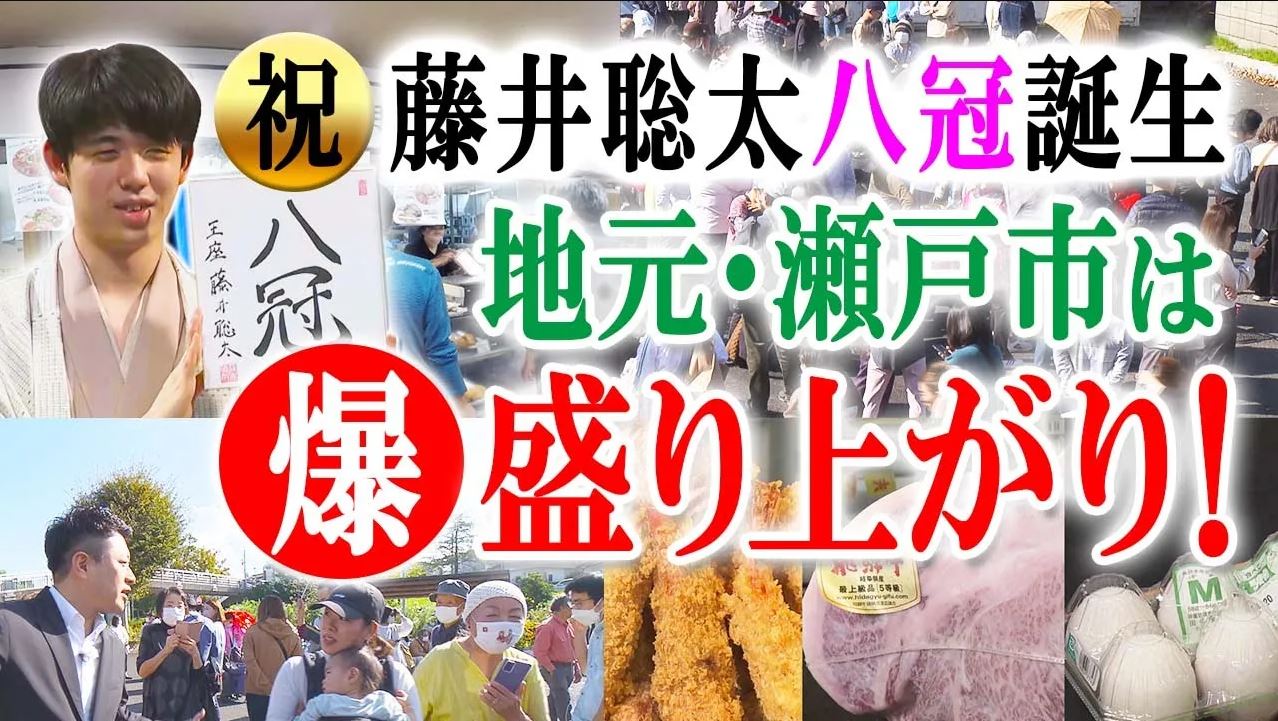 藤井八冠の地元、愛知県瀬戸市は12日とんでもない盛り上がりを見せていました。 日本一、いや将棋では全世界80億人の頂点に立ったと言っても過言ではないでしょう、我らが藤井聡太八冠。 藤井八冠の地元、瀬戸市は大盛り上がりならぬ“爆盛り上がり”状態。 市の観光施設「瀬戸蔵」では八冠を祝う懸垂幕のお披露目式が行われました。 11日の対局終了直後にくす玉を割り、多くの人が喜びを爆発させた駅の複合施設「パルティせと」ではまだまだ興奮が冷めやらぬということで、異例とも言える2日連続2度目のくす玉割りを行うほどの熱狂ぶり。 そんな中、12日に瀬戸市で一番の“爆盛り上がり”を見せたのは、スーパーいせやではないでしょうか。 いせやでは藤井八冠が誕生すると「エビフライ1本88円」、「飛騨牛の肩ロースA5ランクが8割引き」、「卵は1パック8円」と超激安のお祝いセールをすることになっていました。 ということで、12日にお店をのぞくと、オープン2時間前は仕込みの真っ最中。 Q.きょうは何時ぐらいに来た?(番組スタッフ) 「ここに着いたのが午前2時すぎくらい。なかなか応援できる機会がなかったので、すがすがしい」(店舗スタッフ) 普段は朝5時から仕込みに入るそうですが、12日は大勢の来店を見越しオープン時間の8時間前、午前2時から準備をしているといいます。 12日のドデスカの放送中はすでに約15人が並んでいたんですが、それから1時間余りが過ぎると状況が一変しました。 「とんでもない状況です!オープン45分前ですが、150人近い方が並んでいます。藤井八冠誕生記念セールの大行列です」(竹田基起アナウンサー) Q.何時から並んだ?(竹田アナウンサー) 「朝の3時から。飛騨牛肩ロースA5ランクを買いに来ました」(瀬戸市民) Q.これだけ人がいるのは?(竹田アナウンサー) 「こんなに人がいることに驚いている」(瀬戸市民) Q.この行列をみてどう思った?(竹田アナウンサー) 「『あ~』って思いました。団地の中にしては珍しい行列だと思う。大人がこんなに集まるのは無いに等しい」(瀬戸市民) 午前9時40分を過ぎると藤井八冠効果も相まってか、とにかく長蛇の列。 その数なんと259人。 「午前9時45分です。15分前倒してオープンしました。入場制限をするため先頭から10人の方が店の中に入っていきました」(竹田アナウンサー) 店内ですぐに人だかりができたのは飛騨牛が8割引きで売られていたエリア。 「他の売り場に目を向けることなく肉売り場。1kg限定ということで 2パックずつ(500g×2)手に取ってかごの中に入れています。オープン前は高く積みあがっていたエビフライがかなり減ってしまっています。お皿のエビフライ無くなっちゃいそうですね」(竹田アナウンサー) エビフライは当初100本の予定でしたが、あまりにも行列ができたため、急遽倍の200本に増やしました。 にもかかわらず、わずか28分で完売。 飛騨牛も値引き対象は50kg分の予定だったところを80kgまで増やしましたが52分で完売。8円の卵も300パック用意していましたが、1時間でなくなりました 。 Q.このお肉できょう何食べるんですか?(竹田アナウンサー) 「孫とすき焼き」(瀬戸市民) 「最高じゃないですか!お孫さん大喜び」(竹田アナウンサー) 「そのつもりで買った。ドデスカ!のおかげです。中継みて飛んできました」(瀬戸市民) 「藤井八冠のおかげで、すごい盛況をいただいている」(新鮮市場いせや 福丸明男代表取締役) Q.利益は出ない?(竹田アナウンサー) 「利益…大損ですけど…、本当に大損です。お客様の喜びと藤井八冠への感謝。故郷瀬戸の街を盛り上げてくれて本当にありがとうございます!」(福丸代表取締役) 藤井八冠誕生セールは13日と14日も行われます。 数量限定で飛騨牛の肩ロースが半額になるそうですよ。