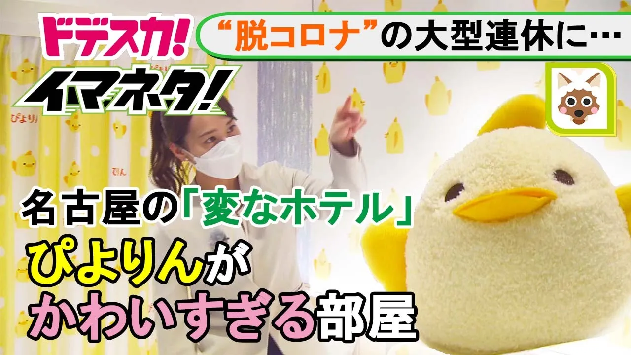 間もなくやってくる“脱コロナ”のゴールデンウィーク。新たな集客の起爆剤となるのでしょうか。名古屋で人気のスイーツ「ぴよりん」が、ホテルとコラボレーションです。 今年のゴールデンウィークは4月29日(土)から始まり、5月1日(月)・2日(火)に休みが取れれば最大で9連休の人も。多くの人が待ちわびていた“脱コロナ”の大型連休。国内旅行の動向を、航空・旅行アナリストの鳥海高太朗さんに教えてもらいました。 「予想以上に国内旅行の回復については順調な状況にありまして、コロナを気にせずに旅行に行ける環境が、ほぼ整いつつあるという中で、帰省をする人も非常に多くいるということも含めて、このGWは国内を移動する人が多くなるのではないか」 「円安や物価高の影響で海外旅行の回復は限定的だが、国内の旅行者は、コロナ前の2019年を大きく上回るだろう」(航空・旅行アナリスト 鳥海高太朗さん) コロナ禍で苦しんだ観光に携わる人にとっては明るい見通し。そんな中、旅先で名古屋を選んでくれるかもしれない新たな注目スポットが登場します。 名古屋市営地下鉄の伏見駅から徒歩1分の「変なホテルエクスプレス名古屋 伏見駅前」。こちらに名古屋名物「ぴよりん」とコラボした部屋があるそうなんですが…部屋に入った島津咲苗アナの目に飛び込んできたものは… 「あっ!なるほど!か~わいい!ぴよりんですね。何十羽いるんだろう?」(島津アナ) 部屋いっぱいの「ぴよりん」!カーテンにも、テーブルにも、そして枕元にも…まさに「ぴよりん」尽くし。クマのぬいぐるみもぴよりんを被っています。 2022年12月に開業した「変なホテルエクスプレス名古屋 伏見駅前」。登録したメールアドレスに送られてくるQRコードをフロントの専用機器にかざすと、最短10秒でチェックインできる最先端ホテルです。 Q.なぜ「ぴよりん」のコンセプトルームを作ったのですか? 「ホテルの滞在も旅の1つの楽しみとして今回、名古屋の有名スイーツぴよりんとコラボできたら楽しいなと思い、作りました」(宮崎達也 支配人) ちなみに、この部屋に一体どれだけのぴよりんがいるのか?島津アナが数えて調べてみました。 ・壁紙 59羽 ・カーテン 98羽 ・ぬいぐるみ 2羽 ・ベッドスロー 2羽 ・ご当地ベアとコラボしたスペシャルなぬいぐるみ 1羽 ・テーブル上のグラス 2羽 ・宿泊者だけがもらえるオリジナルキーホルダーとコースター 2羽 合計 168羽 さらに、この部屋に宿泊すると名古屋駅にある「ぴよりんショップ」でスイーツのぴよりんがもらえる特典もついてくるのです。1人で泊っても2羽もらえます。とても繊細で崩れやすいぴよりんを無事に持ち帰れるか、SNSで話題になった「ぴよりんチャレンジ」。宿泊した時にはぜひ体験して欲しいと支配人は話します。 「名古屋駅からぴよりんを持って来てもらって『ぴよりんチャレンジ』をしながら、お部屋で食べてもらったらすごく楽しいと思いまして」(宮崎支配人) Q.今後GWに向けては? 「レジャー目的のお客様がすごく増えてきていますので、まだぴよりんを知らない人や、『変なホテル』を知らない人でも、なんだか楽しそうと思っていただき、ご宿泊いただければと思っています」 ぴよりんルームは4月17日(月)から宿泊できるようになります。2024年3月31日までの期間限定です。宿泊料金は朝食付きで1泊2万2100円~、素泊まりの場合は1万9500円~となっています。 最近、東海地方ではコンセプトルームが次々と登場し話題になっています。 去年5月には愛知県豊橋市での「ホテルアソシア豊橋」で、お菓子の「ブラックサンダー」とコラボした部屋が登場。去年7月には名古屋の「ANNクラウンプラザホテルグランコート名古屋」でもドラゴンズのマスコット「ドアラ」とコラボしたコンセプトルームが登場しました。こうしたコンセプトルームは全国でもブームになっていると、航空・旅行アナリストの鳥海高太朗さんは話します。 「鉄道会社や航空会社とコラボした部屋や、アニメのキャラクターとコラボしたものなど様々なコンセプトルームが日本全国で展開されていて、ホテルに泊まることが目的。そして近隣住民を含め、本来日帰りできる人もその部屋に泊まりたいという理由で宿泊する。新たな宿泊需要の創出という部分も大きいと思います」 Q.コンセプトルームが増えている背景は? 「インターネットなどで情報が目立つことによってホテルの集客率がアップするということがありますし、通常の部屋に比べると少し値段が上がるので客室の単価を上げることができます。ホテルとしても宣伝・PR効果に期待できるという点も含めて、力を入れているという状況にあります」(航空・旅行アナリスト 鳥海高太朗さん)
