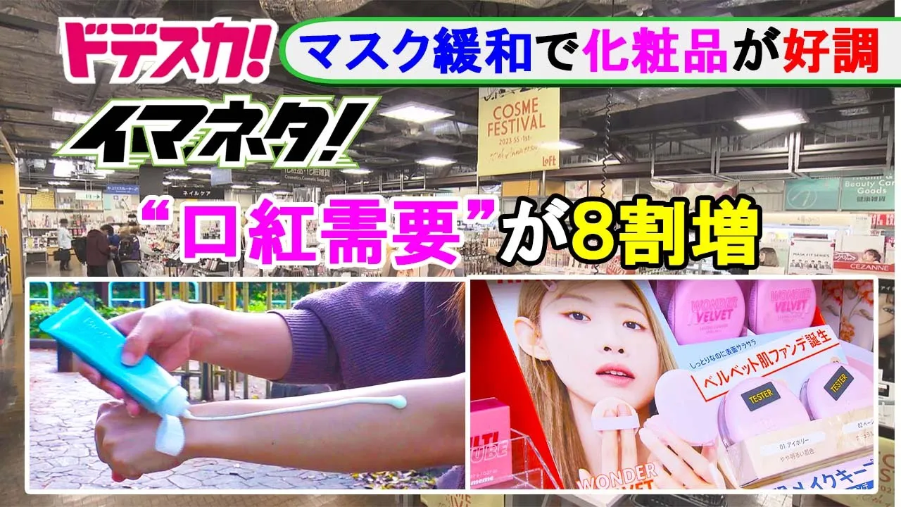 マスク着用が緩和されて1カ月。ここ最近で「売れてきているモノ」と「落ち着いてきたモノ」が明らかになってきました。 名古屋・栄にある「ロフト名古屋」、今年に入って特に化粧品の販売が好調だと言います。 「メイク用品売り場には、こちらにも、こちらにも、さらにこちらにも…リップが置いてあります」(番組スタッフ) ロフト名古屋では口紅だけで100種類以上の取り扱いがあるのだそうです。この“口紅需要”についてお客さんは… 「やっぱりマスクを取るので口元は気になります。リップは買ったり見に来たりします」 「結構マスクを外す機会が多くなったので、リップはよく使うようになりました。マスクを外すからこそリップはこだわりたいなって思います」 この需要の変化について市場アナリストの木地利光さんに話を聞きました。 「前年に比較して口紅は8割ほど伸びておりましたので、目覚ましく伸びていると思っていて、3月半ばからマスクの着用が個人の判断となったことで、マスクを着用しない人も増えてきています。新たに口紅を買って身だしなみを整えるという需要も高まってきていると思います」(市場アナリスト 木地利光さん) 木地さんが所属している調査会社『インテージ』では、2017年から全国のスーパーやドラッグストアなどで様々な商品の販売額を調査。今年3月にマスク着用を政府が緩和した影響もあってか、口紅の販売額は2月から3月だけで8億円増加と急上昇していることがわかりました。 他にも化粧品はファンデーションやチークなどの販売も好調なんだとか。さらに外出需要も高まったことから、化粧品以外でも日焼け止めや酔い止めなども上昇傾向にあるそうです。 「通常の動向だと伸びても1~2割程度なので、かなり珍しい動きで、『あっこんなに急に動くんだ』と想定より早いスピードで戻ってきていると思います」(木場さん) ちなみに化粧品と同様に、今年の2月から3月に販売が上昇した商品が… 「オーラルケア関係の動向を見ると少し興味深いのは、マウスウォッシュや歯磨き粉といった家で使うタイプのオーラルケアはやや前年よりも販売が落ちていまして、一方ガムやタブレット菓子は販売が伸びております。これは外出時に手軽に口臭ケアをできるということが大きな理由としてみられます」(木場さん) 一方でこんな変化も… 「コロナ禍で感染予防対策で使用していた商品については減少傾向がみられています」(木場さん) 実際にロフト名古屋でも、店舗の中心の人気商品を置くゾーンは、今までマスク売り場だったそうですが、今は奥の方へ移動したそうです。 「マスクはもうだいぶ数を絞りましたね。コロナ対策コーナーみたいなものはもう無くなりましたね。ちょっと端っこの方で一列あるくらいですかね」(ロフト名古屋 志賀悦子さん) 市場アナリストの木地さんは、この流れはしばらく続くとみています。 「化粧品は今後も売れていくと考えていて、それはインバウンド需要が強くて、観光客が特に買っているのが化粧品と医薬品ですので、こういった市場は今後も強くなっていくのかなと思っています」(木場さん)