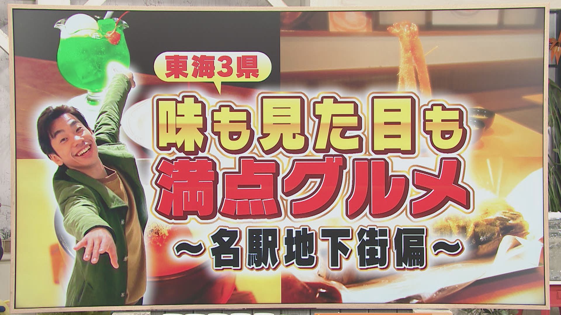 ●海老どて食堂 【住所】名古屋市中村区椿町6-9 エスカ地下街 【電話番号】(052)459-5517 【営業時間】午前11時~午後9時30分 LO:午後8時30分 【定休日】施設に準じる ・海老どて串盛り単品 ・城盛り海老定食 ・特大海老ふりゃ~タワー丼 ●鶏だしおでん さもん KITTE名古屋店 【住所】名古屋市中村区名駅1-1-1 JPタワー名古屋B1F 【電話番号】(052)589-3344 【営業時間】午前11時~午後3時 午後4時~午後11時 ・大根 ※平日は午後1時以降の販売 ・大がんもどき ※平日は午後1時以降の販売 ・餅きんちゃく ※平日は午後1時以降の販売 ・名古屋コーチン半熟卵 ※平日は午後1時以降の販売 ・トマト ※平日は午後1時以降の販売 ●カフェニュージャポネ 【住所】名古屋市中村区名駅4-7-25 名駅地下街サンロード内 【電話番号】(052)551-7580 【営業時間】午前8時~午後8時30分 【定休日】施設に準じる ・鉄板ナポリタン ※午前11時~の販売 ・ジャポネライス ミックスフライ ※午前11時~の販売 ・フロート ※平日:午後2時~ 土日祝:午前11時~の販売 ・プリン ※平日:午後2時~ 土日祝:午前11時~の販売 ●廣寿司本店 JR名古屋駅店 【住所】名古屋市中村区名駅1-1-4 名古屋うまいもん通り内 【電話番号】(052)541-4108 【営業時間】平日:午前10時30分~午後10時30分 LO:午後10時 土日:午前11時~午後10時30分 LO:午後10時 【定休日】年中無休 ・さば松前寿司 ※情報内容は放送当時のものです 出演:織田信成 纐纈琴巴(東海テレビアナウンサー)