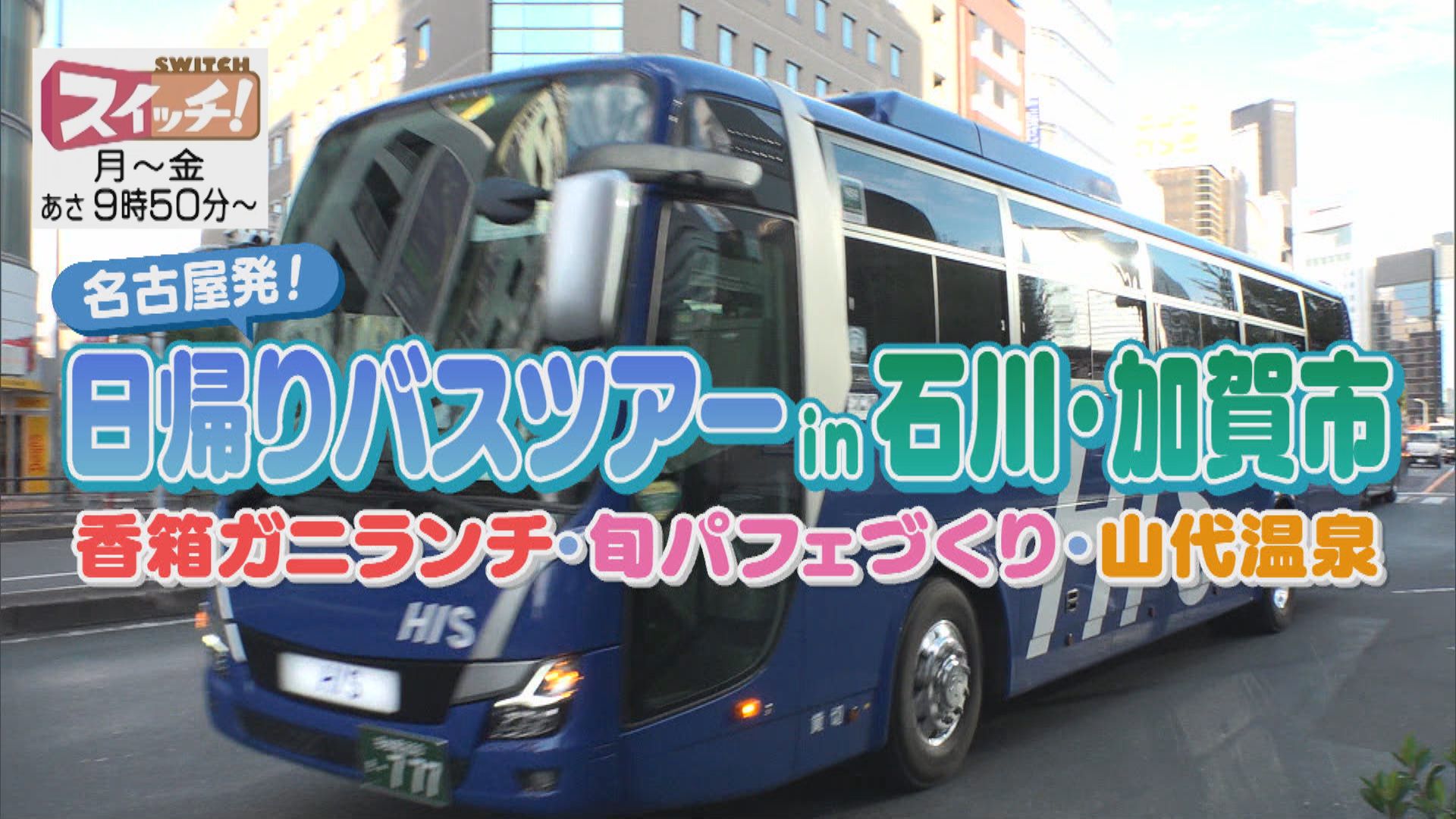 ●HIS 【電話番号】050-1748-1663 【営業時間】平日:午前9時30分~午後6時30分 ※土日祝は午前10時から午後5時まで 【ツアー名】 香箱ガニ「加賀御膳」ランチと加賀フルーツパフェ作り&山代温泉 ※日程の詳細はHISのHPにてご確認ください ※お申し込みは出発日3日前 午前10時までの受付 <オンライン予約限定特典> 献上加賀棒茶のロールケーキをプレゼント ▼検索窓 HIS中部バス ※情報内容は放送当時のものです 出演:高橋知幸(東海テレビアナウンサー)