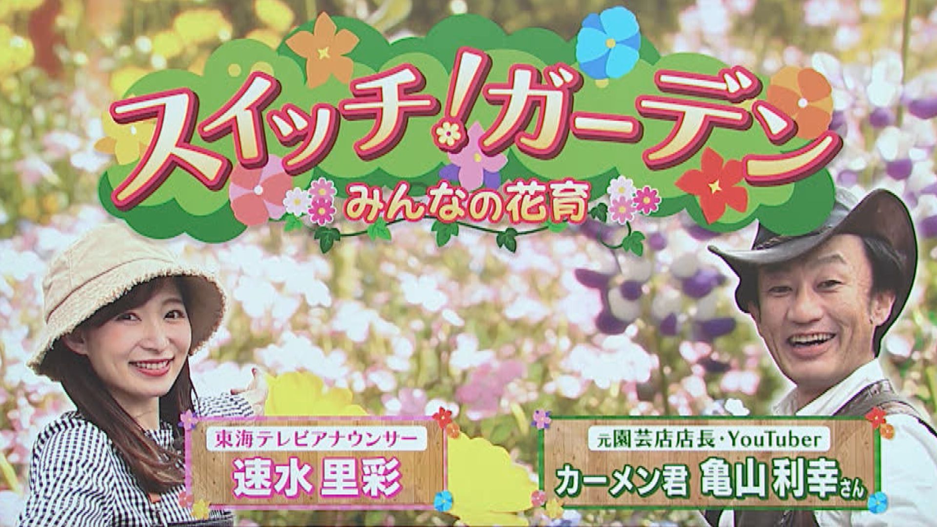 ●久屋大通庭園フラリエ 【住所】名古屋市中区大須4-4-1 【電話番号】(052)243-0511 【営業時間】午前9時~午後5時30分 【定休日】12月29日~1月3日(店舗はそれぞれ異なる) メンテナンス休園日 ・スーパートレニアカタリーナ ・ダヴィンチマム ・セロシア ビューティーシリーズ ●green room + f 【住所】名古屋市中区大須4-4-1 久屋大通庭園フラリエ内 【電話番号】(052)238-3907 【営業時間】月曜~土曜:午前10時~午後6時 日曜:午前10時~午後5時 【定休日】年末年始 ・プリムラ・ジュリアン ・神戸ビオラ ・フリルパンジー シエルブリエ ・よく咲くスミレ ・ビオラ ※情報内容は放送当時のものです 出演:カーメン君(亀山利幸) 速水里彩(東海テレビアナウンサー)