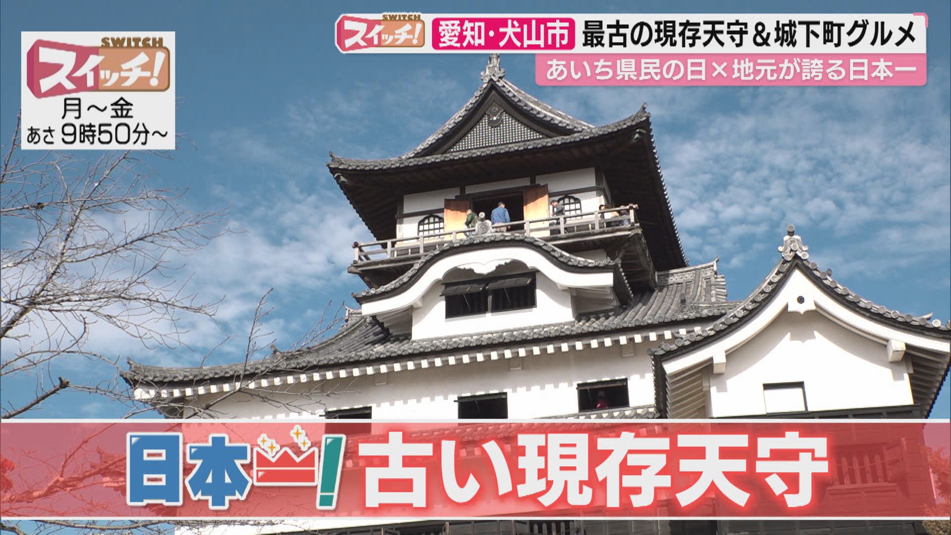 ●犬山城 【住所】愛知県犬山市犬山北古券65-2 【電話番号】(0568)61-1711 【開園時間】午前9時~午後5時 (最終入場:午後4時30分まで) 【休園日】12月29日~31日 ●香味茶寮 壽俵屋 犬山井上邸 【住所】愛知県犬山市大字犬山字西古券6 【電話番号】(0568)62-7722 【開園時間】午前10時~午後4時30分 ・銀だら粕漬定食 ・もりうな茶漬け ・醤油おこげ串 ●Passport 【住所】愛知県犬山市西古券21-2 (犬山城下町 森のマルシェ内) 【電話番号】090-4407-0416 【開園時間】午前10時30分~午後4時30分 【定休日】不定休 ・カプレーゼ ・サーモンロール ・シーザーサラダ ・おサルのサツマイモロール ※2026年2月末まで *日本モンキーセンターとコラボ ※情報内容は放送当時のものです 出演:ザ・たっち(たくや・かずや)