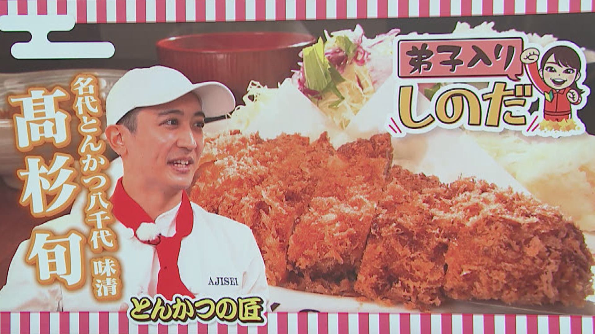 ●名代とんかつ八千代 味清 【住所】名古屋市中村区稲葉地本通り2-9-1 【電話番号】(052)412‐0568 【営業時間】※材料がなくなり次第終了 昼:午前11時~L.O午後2時 夜(平日):午後5時30分~L.O午後8時 夜(土日祝):午後5時~L.O午後8時 【定休日】金曜 木曜夜 ・ハンバーグステーキ定食 ・エビフライ定食 ・ロースかつ定食 ≪味清流とんかつ≫3枚分の材料 ・とんかつ用ロース3枚(1枚 約100g) ・塩コショウ 適量 ・小麦粉 適量 ・卵 2個 ・牛乳 20ml ・乾燥パン粉 150g 【ポイント】 ・肉は調理10分前に冷蔵庫から出し常温に戻しておく ・肉と脂の間の筋を切る ・肉につけた小麦粉と卵をよくなじませる ・とんかつの揚げ時間は 2:1:1 入れて2分 裏返して1分 休ませる1分 ・揚げたとんかつは立てて休ませる ※情報内容は放送当時のものです 出演:篠田愛純(東海テレビアナウンサー)