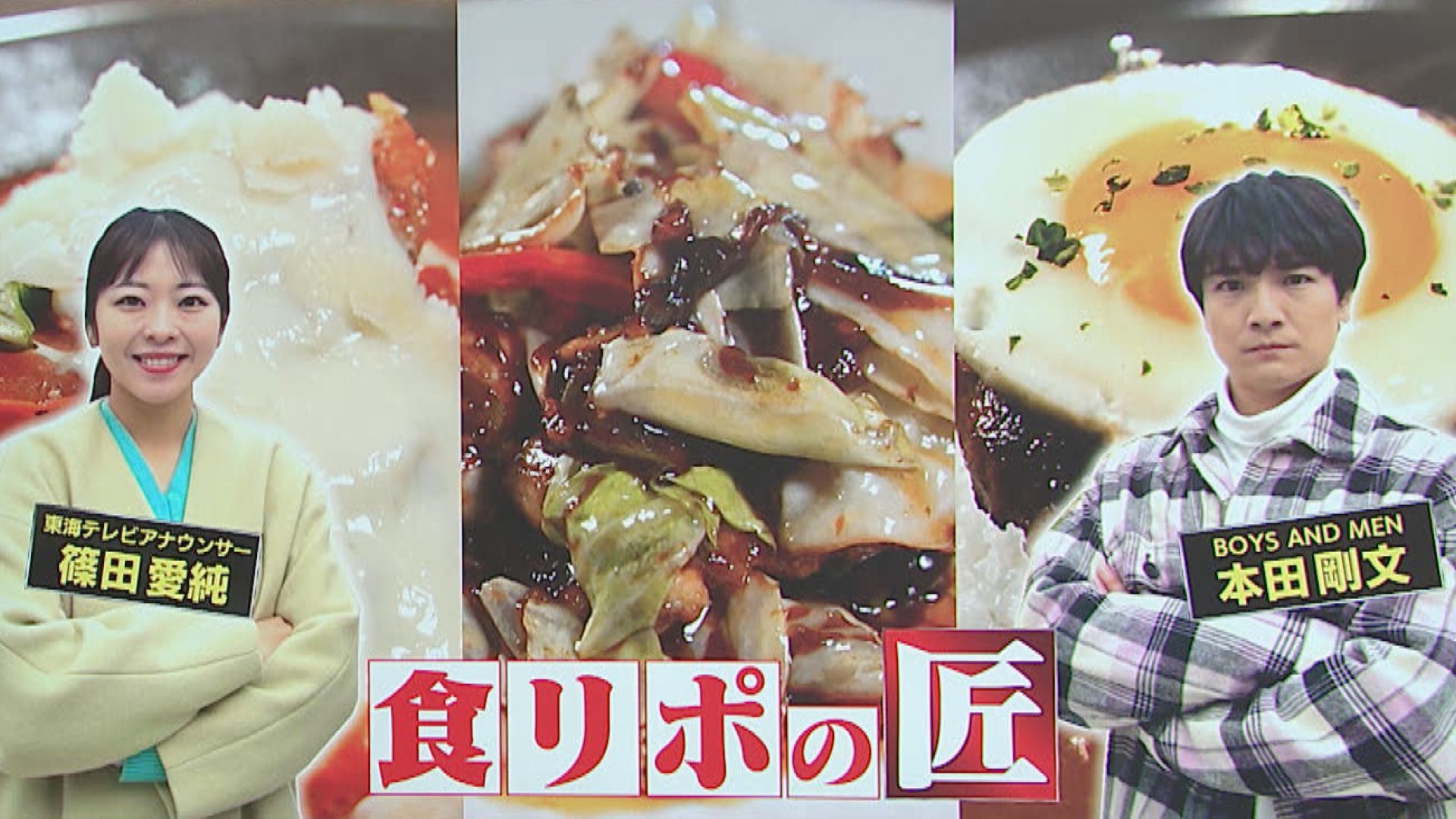 ●Pieno(ピエーノ) 名古屋ラシック店 【住所】名古屋市中区栄3-6-1 ラシック地下1階 【電話番号】(052)310-2200 【営業時間】午前11時~午後9時(L.O.午後8時30分) 【定休日】ラシックの休館日に準ずる ・チョイスランチセット ※平日午前11時~午後5時限定 ・揚げナスとモッツアレラ ・焼きトマトとのび~るモッツァ ・ズワイ蟹のトマトクリームカルボナーラ ・手作りふわもっちティラミス ●中国料理 名東菜館 【住所】名古屋名東区社台3-79 【電話番号】(052)890 -4410 【営業時間】ランチ:午前11時~午後3時 ディナー:午後5時~午後10時 【定休日】月曜 ※祝日の場合は営業、翌日休業 ・野菜いっぱい酢豚 Sサイズ ・キャベツが主役のホイコーロー Sサイズ ・野菜たっぷり玉子スープ ●カレーのあさくま 大須店 【住所】愛知県名古屋市中区大須2-29-9 【電話番号】(052)747-2807 【営業時間】午前11時~午後9時 【定休日】なし ・ステーキカレー ・ハンバーグカレー 目玉焼きトッピング ・シュレッドチーズカレー ホワイトアウト ※情報内容は放送当時のものです 出演:本田剛文(BOYS AND MEN) 篠田愛純(東海テレビアナウンサー)