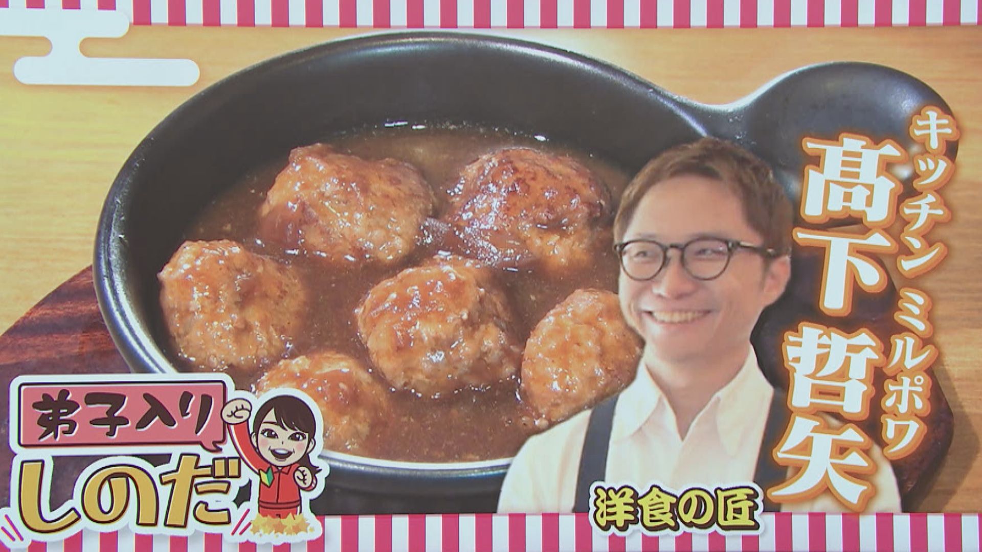 ●キッチン ミルポワ 【住所】名古屋市中村区名駅5-28-1名駅イーストビル1F 【電話番号】(052)583-0678 【営業時間】午前11時30分~午後2時30分 午後5時~午後9時30分 【定休日】日・祝 ※不定休あり デミグラスミートボールの材料 〈デミグラスソース〉 ・炒めた玉ねぎ 80g ・赤みそ 20g ・ケチャップ20g ・赤ワイン 80ml [調味料A] ・水 400ml ・ウスターソース 20ml ・塩2g ・砂糖10g ・コンソメ10g ・片栗粉 10g ・コショウ 少々 [香り付け] ・バター 20g 〈ミートボール 3~4人前〉 ・ひき肉 400g(牛豚合いびき200g+豚200g) ・炒めた玉ねぎ 80g ・たまご 1個 ・パン粉 20g ・牛乳 20g ・塩 2g ・コンソメ 5g 【ポイント】 ・ふわっとジューシーに仕上げるため合いびき肉と豚ひき肉は1:1 ・肉は混ぜすぎず肉感を残す ・肉の焼き目をしっかりつける ・油と焦げはうまみとして利用 ・赤みそは事前に炒める ※情報内容は放送当時のものです 出演:篠田愛純(東海テレビアナウンサー)