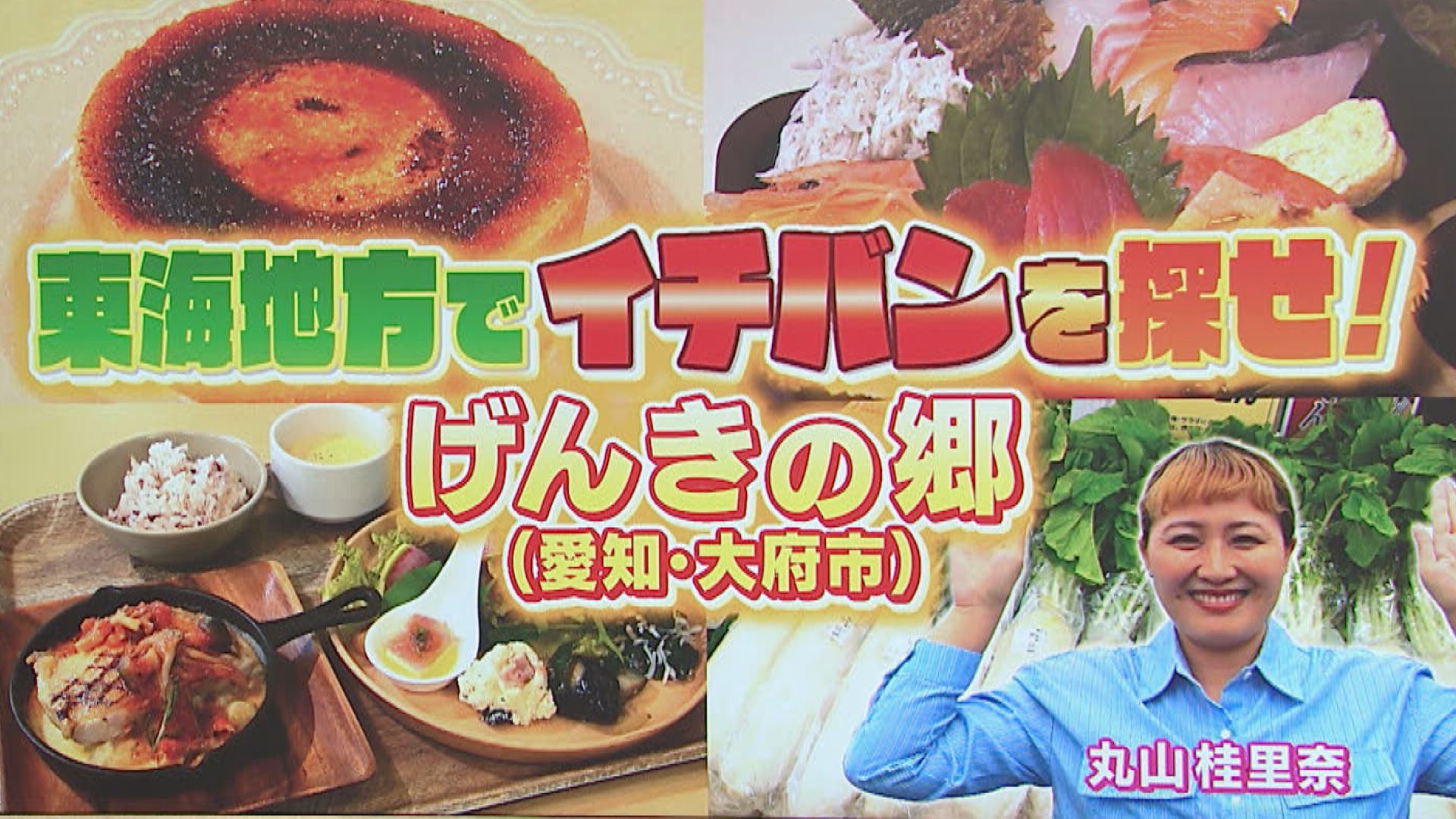 ●JAあぐりタウン げんきの郷 【住所】愛知県大府市吉田町正右エ門新田1-1 【電話番号】(0562)45-4080 【営業時間】施設により異なる 【定休日】毎月1日 ※1日が土・日・祝の場合、翌平日が休み <ファーマーズマーケット はなまる市> 【電話番号】(0562)45-4081 【営業時間】午前9時~午後6時 <魚太郎 大府店> 【電話番号】(0562)46-6677 【営業時間】午前9時~午後5時 <魚太郎 市場食堂 大府店> 【電話番号】(0562)46-6677 【営業時間】午前10時~午後5時 ※ラストオーダー午後4時 <天然温泉 めぐみの湯> 【電話番号】(0562)45-4084 【営業時間】午前9時~午後9時 <もぐもぐベーカリー> 【電話番号】(0562)45-4082 【営業時間】午前9時~午後6時 <さいさいデリカ> 【電話番号】(0562)45-4082 【営業時間】午前9時~午後6時 <すくすくヶ丘> 【電話番号】(0562)45-4103 【営業時間】午前9時~午後6時 ランチ:午前10時30分~午後3時 ※情報内容は放送当時のものです 出演:丸山桂里奈