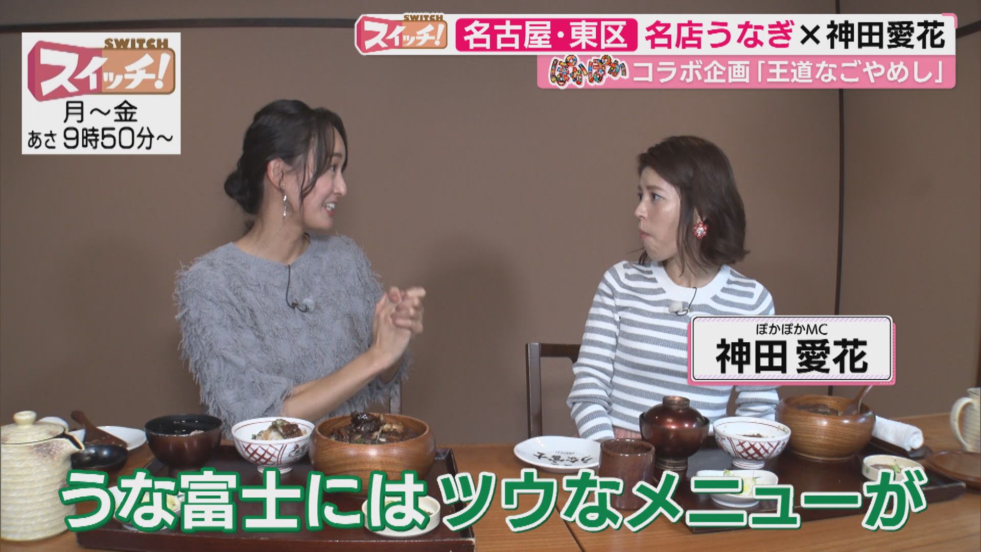 ●炭焼 うな富士 白壁別邸 【住所】名古屋市東区芳野1-10-21 【営業時間】午前11時~午後2時30分 午後5時~午後9時 【電話番号】(052)325-4788 ・肝入り上ひつまぶし ・うなぎの燻製 ※情報内容は放送当時のものです 出演:神田愛花 浦口史帆(東海テレビアナウンサー)