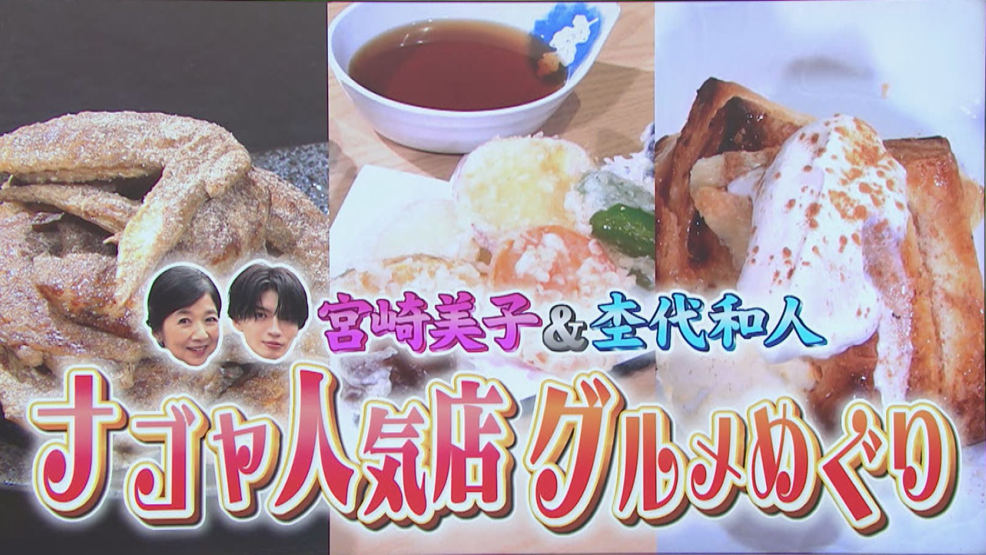 ●山 ワンランク上の世界の山ちゃん 伏見店 【住所】名古屋市中区栄2-1-22 【電話番号】(052)203-9955 【営業時間】午後5時~午後11時 ※ラストオーダー:午後10時30分 【定休日】年末年始 ●松月 セントラルパーク店 【住所】名古屋市中区錦3-15-13 セントラルパーク内 【電話番号】(052)971-0201 【営業時間】月曜~土曜日:午前11時~午後9時30分 ※ラストオーダー:午後9時 日曜日・祝日:午前11時~午後8時30分 ※ラストオーダー:午後8時 【定休日】セントラルパークに準ずる ●ヴァンサンヌ ドゥ 【住所】名古屋市中区錦3-6-29 【電話番号】(052)963-8555 【営業時間】月曜~土曜日:午前11時~午後11時 ※ラストオーダー:午後10時30分 日曜日:午前11時~午後10時30分 ※ラストオーダー:午後10時 【定休日】年末年始 ※情報内容は放送当時のものです 出演:宮崎美子 杢代和人 鈴木翔太(東海テレビアナウンサー)
