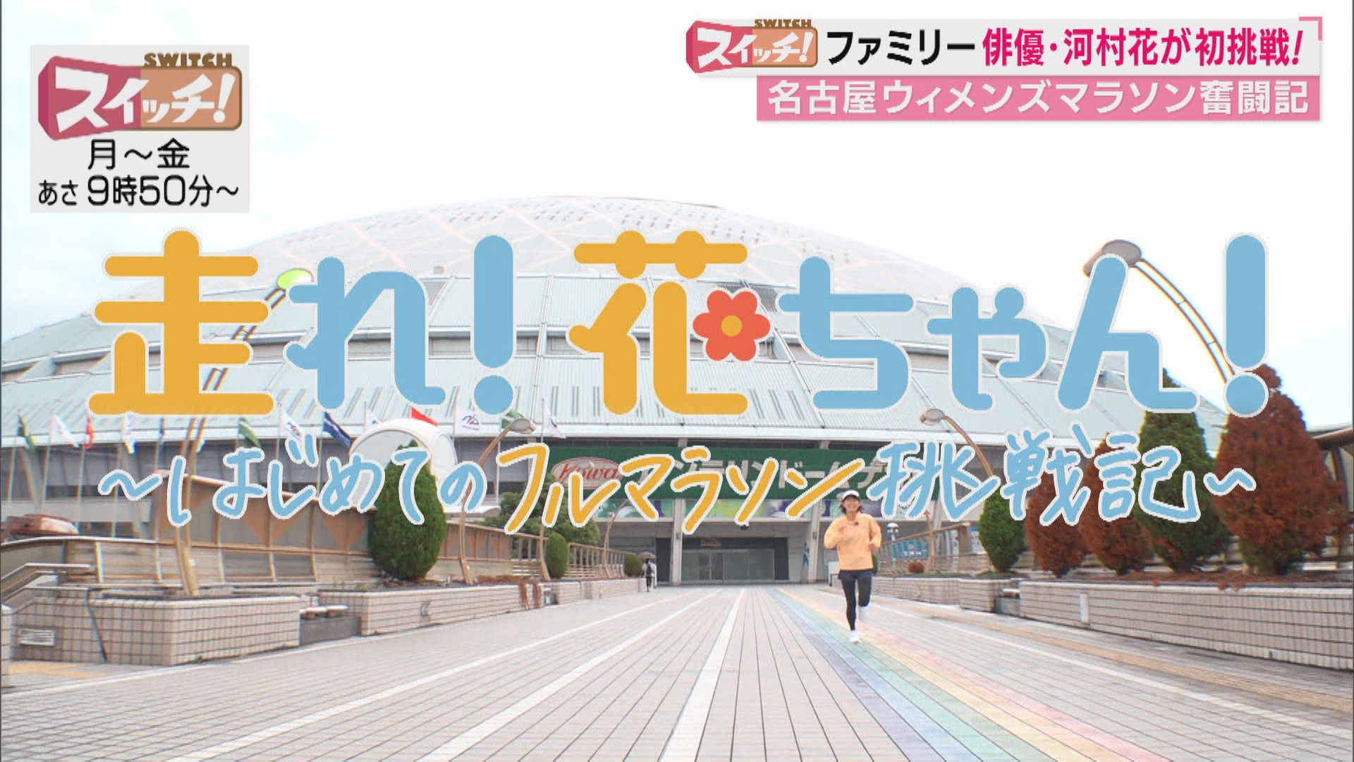 ●名古屋ウィメンズマラソン2025 【開催日】2025年3月9日(日)バンテリンドーム ナゴヤ 発着 出演:河村花 Run up ランニングコーチ 角田達彦さん 河村花さんへの応援メッセージを大募集!☺ 東海テレビ 「スイッチ!」HP ≪募集中≫の 「走れ!花ちゃん!」からお送りください。 みなさんからのメッセージをお待ちしております。