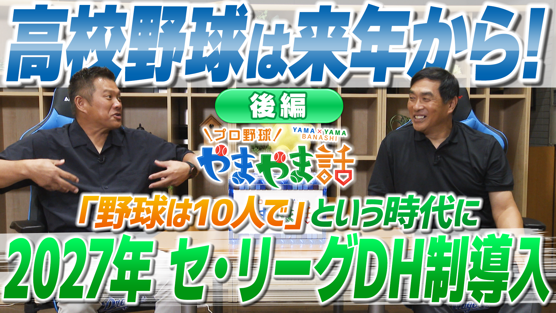 前回に続き、セ・リーグでも2027年から導入が決まった「DH制」が今回のテーマ。 セ・リーグにさきがけ、2026年から「DH制」を導入する高校野球においてのメリットを山本昌さんが熱弁! 一方、山﨑武司さんは「DH」として試合に出ることの難しさを力説! そんなやまやまコンビのお2人からは、 野球の「新時代」が到来するのでは?という大予測も!