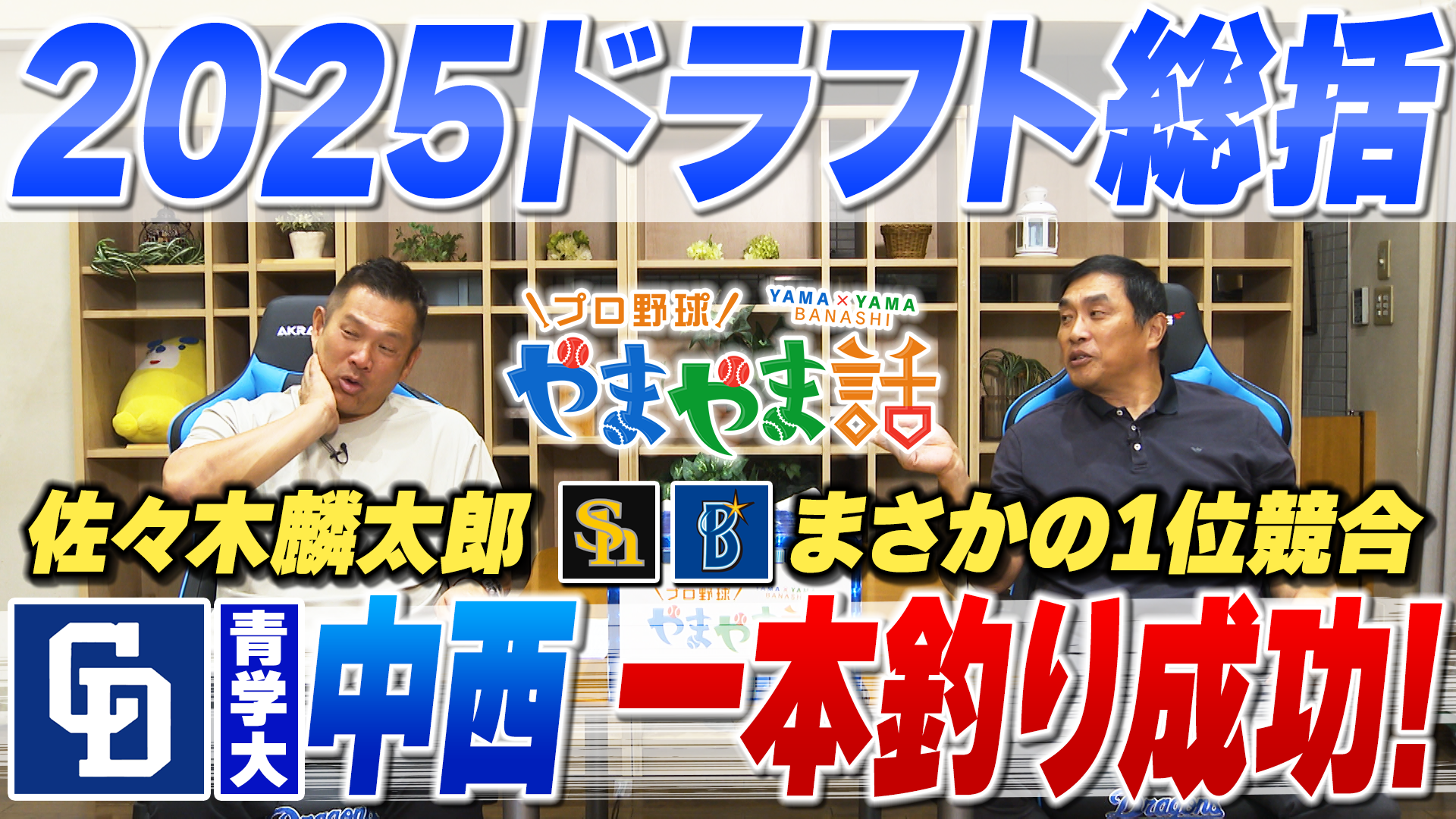 今年も数々のドラマが生まれたドラフト会議。 そこで今回は「やまやまコンビ」のお2人が、ドラゴンズの「2025ドラフト」について本音トーク! 1位で青山学院大・中西投手の一本釣りに成功し、2位でも完成度の高い東北福祉大・櫻井投手、3位では最速157キロの四国IL徳島・篠﨑投手と、タイプの異なる3人の右腕を指名したドラゴンズ。 山本昌さんは、金丸投手や石伊選手らを獲得した去年に続き、今年のドラフトも高評価! 山﨑武司さんからは、DeNAと競合の末、ソフトバンクが交渉権を獲得した佐々木麟太郎選手の話題も!