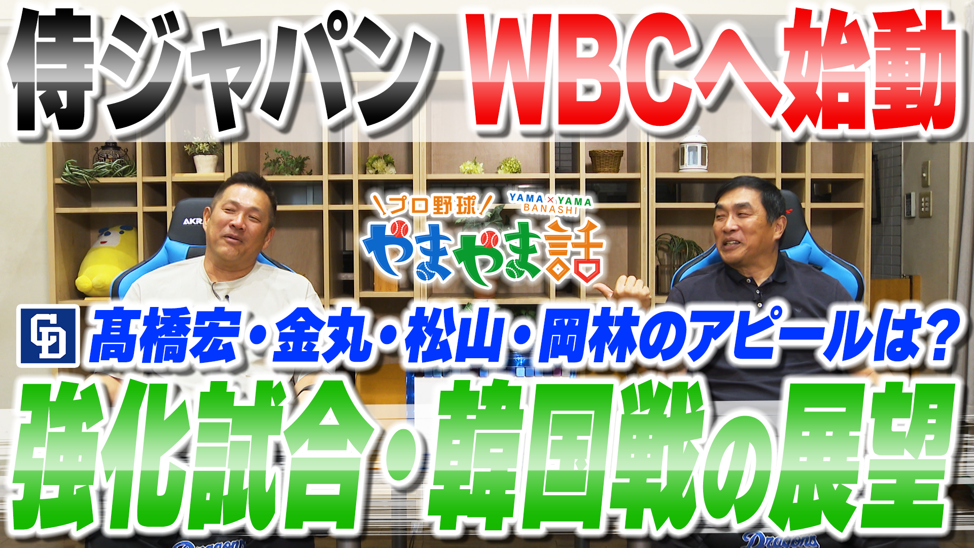 来年3月のWBCに向け、いよいよ本格始動する「侍ジャパン」。 〝永遠のライバル〟韓国との強化試合を前に、 山本昌さんと山﨑武司さんが召集されたメンバーをもとに戦力分析。 代表選手の発表後に辞退者が複数出ましたが、このメンバーを選んだ井端監督の狙いとは? そして「やまやまコンビ」のお2人も期待する竜戦士たちの活躍は?