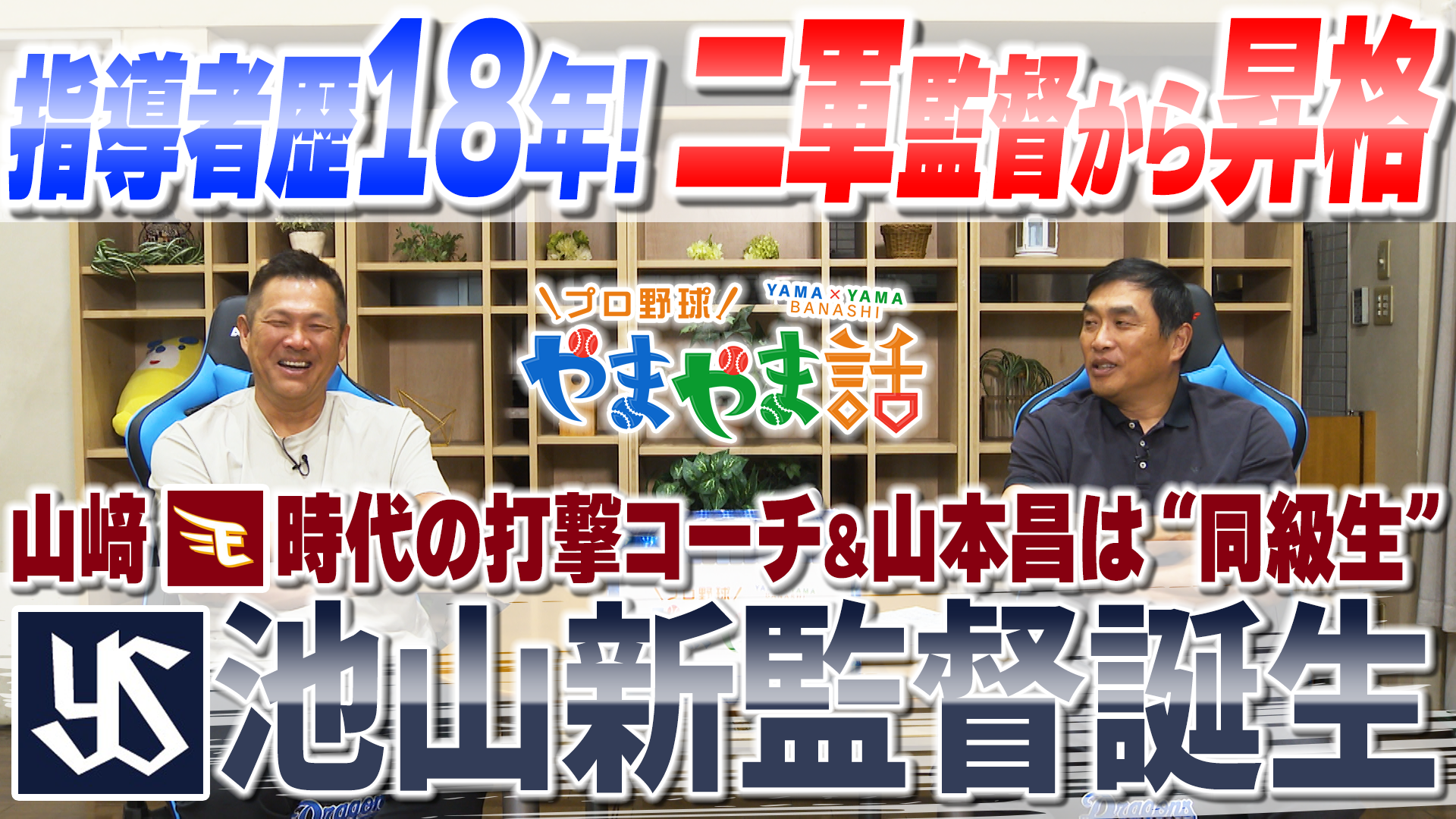 3年連続最下位の座から抜け出したドラゴンズ。 その一方で最下位に沈んだのがスワローズでした。 2021・2022年にはリーグ連覇を果たした高津臣吾監督も、 2025年シーズン限りで退任。 後任として二軍監督を6シーズン務めた池山隆寛氏が 就任することになりました。 山﨑武司さんにとっては楽天時代の打撃コーチであり、 山本昌さんにとっては、昭和40年生まれの同級生と、 やまやまコンビのお2人にとっても縁がある池山新監督。 チーム防御率3.59とリーグワースト、 さらに主砲・村上選手がポスティングで移籍濃厚という中、 どのようにしてチームを再建するのか? その手腕に注目です!