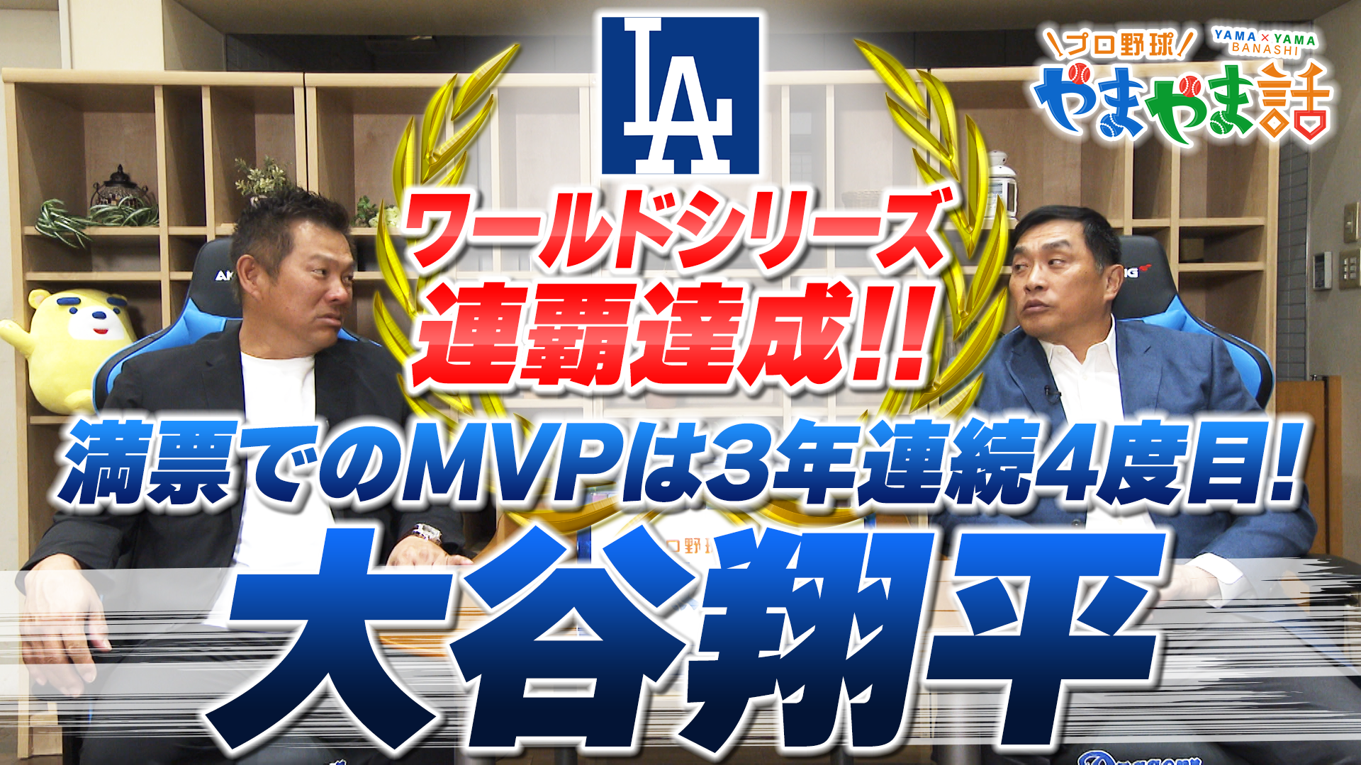 今回のテーマは「2025MLB回顧」。 2025年のシーズン、主役はなんといってもドジャース! ワールドシリーズでは球団史上初の連覇を達成! その中心にいたのは、やはり大谷翔平選手でした。 二刀流も復活し、満票でMVPを獲得。 まさに地球上で唯一無二の存在とあって、もはや解説の域を超越していると、山本昌さんも山﨑武司さんもただただ驚嘆するのみ。 さらには、ワールドシリーズで大車輪の活躍を見せ、MVPに輝いた山本由伸投手とルーキーイヤーだった佐々木朗希投手の1年も「やまやまコンビ」が振り返ります。