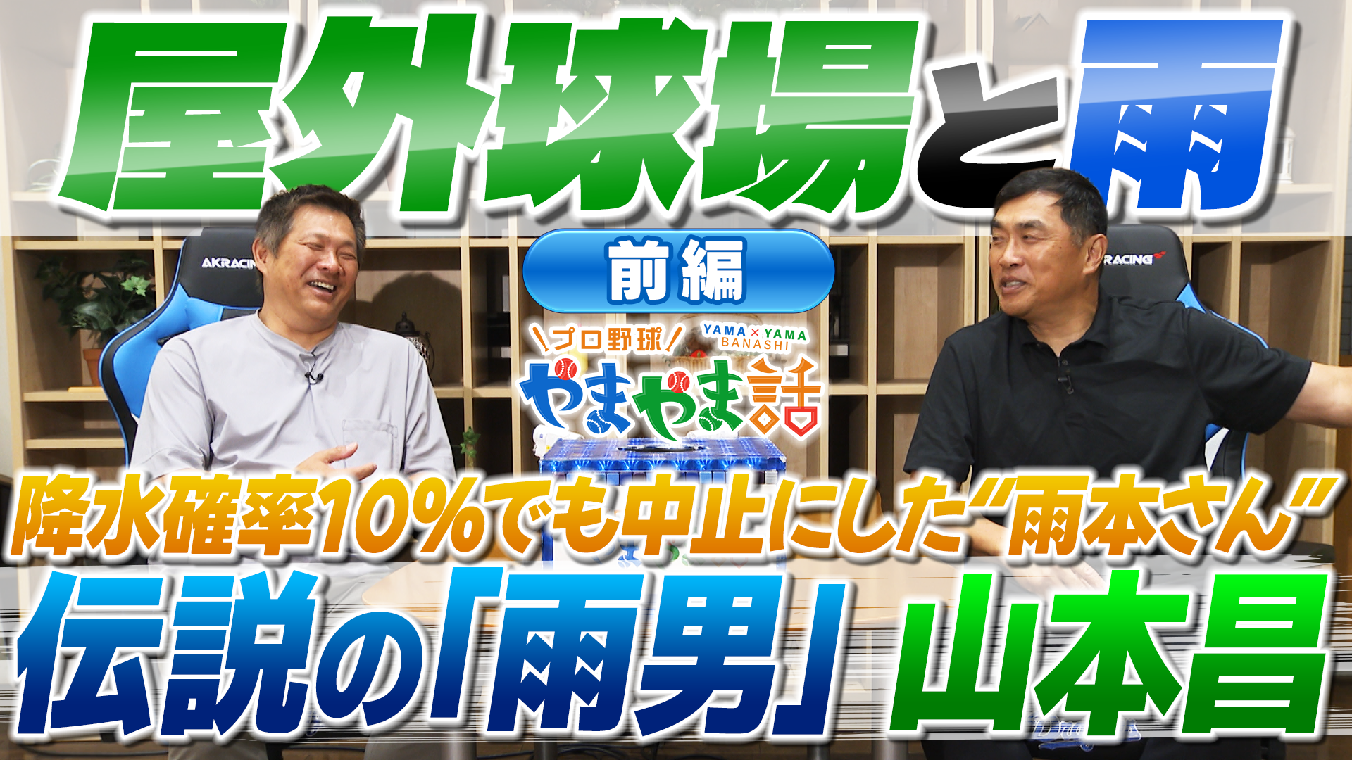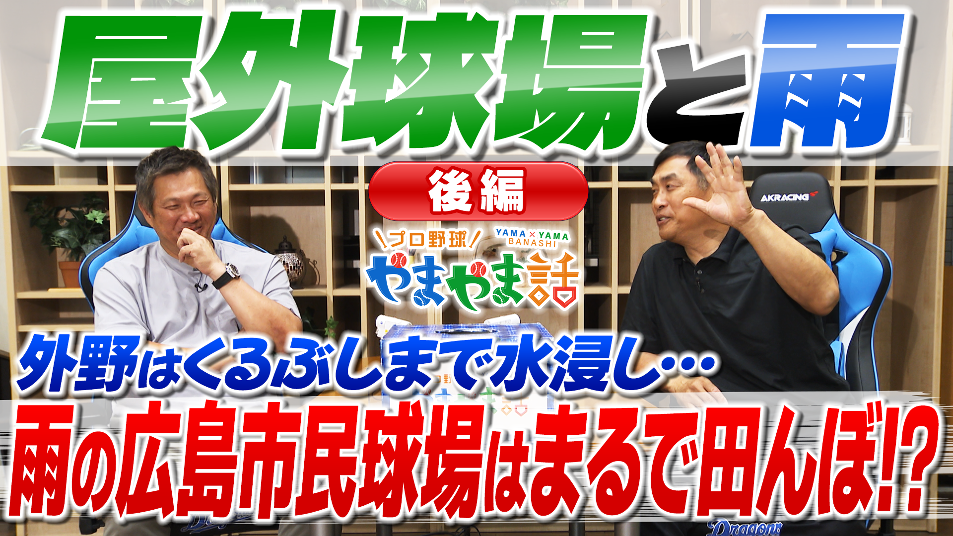 今回のテーマは「屋外球場と雨」。 2週にわたってお届けする前編です。 セ・リーグでは中日・巨人を除く4球団は屋外球場が本拠地。 雨の中でも試合が強行されることもあり、 プレーする選手にとっても晴天時とは違った工夫が求められます。 そこで、現役時代にやまやまコンビのお2人が、 どのような対策をして、雨天での試合に臨んでいたのかを明かします。 山本昌さんは、先発予定の日に雨天中止になることが多かったそうで… また、山﨑武司さんは、球足の速くなる人工芝球場での思い出を語ります。