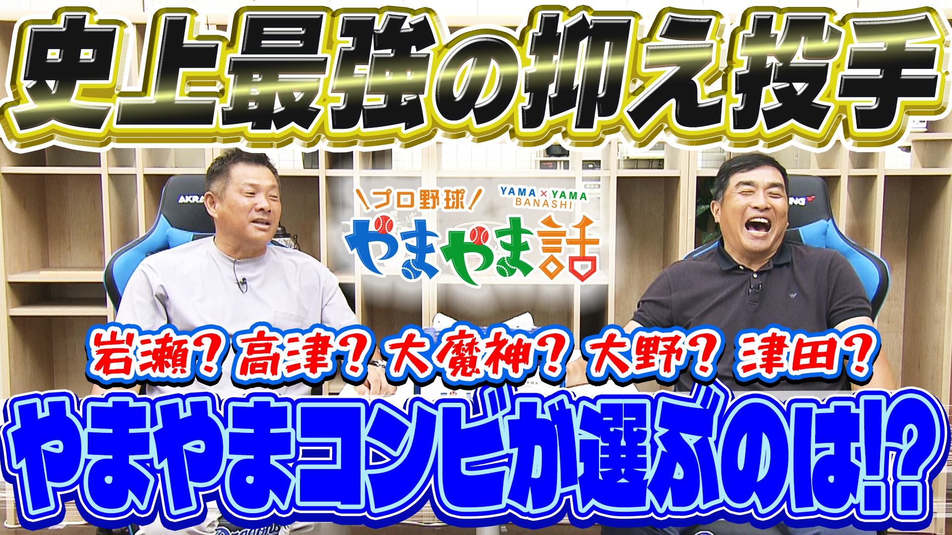 今回のテーマは史上最強の抑え投手。 プロ野球の歴史の中で史上最強の抑え投手は 誰なのか? 二人と共に戦った岩瀬仁紀さんを筆頭に、 佐々木主浩さん、大野豊さん、高津臣吾さん など二人に歴代最高の抑え投手について語ってもらいました。