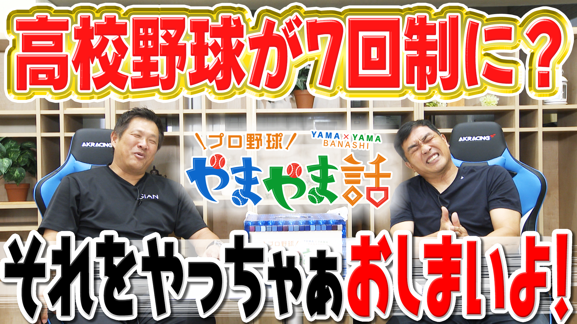今回のテーマは、本格的に検討が始まった「高校野球7回制」。 この夏の甲子園では、酷暑対策として午前・午後の2部制を採用。 試合時間短縮を目的とした「タイブレーク」も定着するなか、さらなる〝時短〟へと舵を切るのか!?岐路を迎えた野球界へ送る、やまやまコンビの提言とは?
