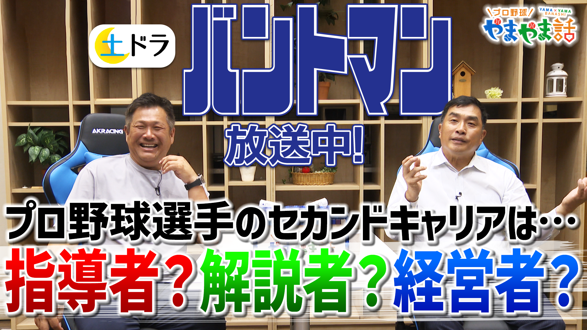 今回のテーマは「バントマン」! 現在、土曜の夜にフジテレビ系列で放送しているドラマのタイトルで ドラゴンズが全面協力したことでも話題に! かつてドラゴンズのホームランバッターだった選手が戦力外となり、 一般企業で歩む第二の人生で、誰かのために自らを犠牲にする 「バントマン」としての役割を求められる…というストーリー。 実際、プロ野球選手の〝セカンドキャリア〟で、 野球と関わりを持てる人はほんの一握り。 なかには、まったくの異業種に挑戦する人も… 球界をよく知る「やまやまコンビ」から見た、 〝セカンドキャリア〟の現実について、ドラマを絡めながら語ります!