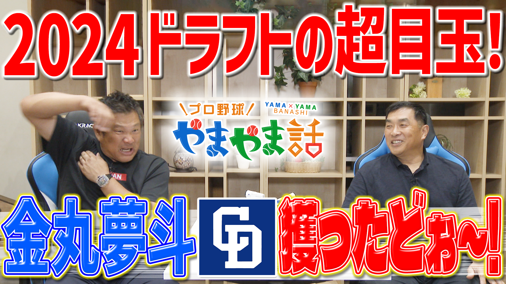 今年のドラフトで4球団競合の末、 見事、井上監督が引き当てた大学NO.1サウスポー・金丸夢斗投手。 井上監督が見せた脱臼寸前の豪快なガッツポーズに 狂喜乱舞したファンも多かったはず! そこで、今回は1位指名の金丸投手はもちろん、 先日の「ドラHOT +」公開生放送に出演した2位の吉田聖弥投手や 3位の森駿太選手など、支配下で指名された6人について、 やまやまコンビの2人が独自の目線で解説! 2024年のドラフトを振り返ります。