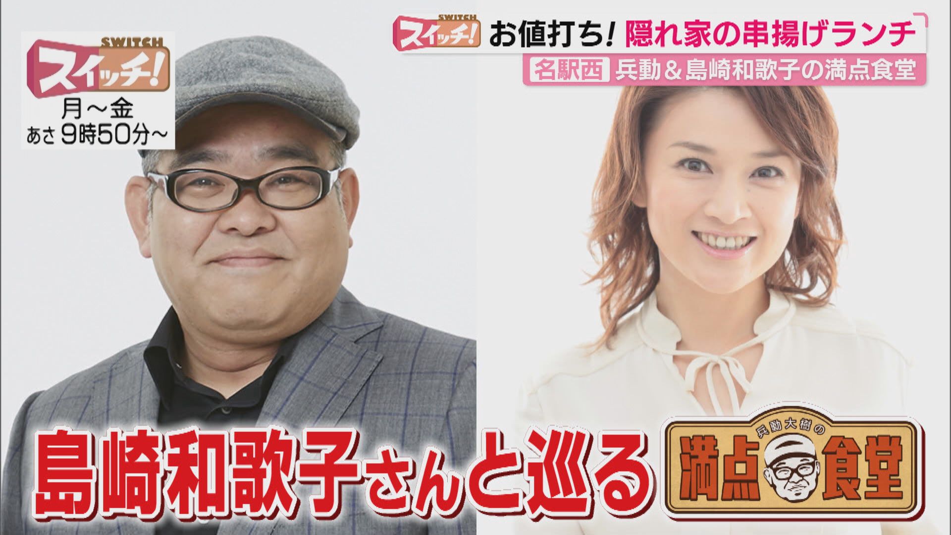 ●海苔のおがわ 【住所】名古屋市中村区太閤通6-95 【電話番号】(052)482-3500 【営業時間】午前9時~午後5時 【定休日】土曜・日曜・祝日 ・治助 味付 ・金ごま ●カラオケ喫茶ほっこり 【住所】名古屋市中村区中島町4-14-4 【電話番号】(052)483-3911 【営業時間】正午~午後5時 午後6時~午後10時 ※夜営業は予約限定 【定休日】月曜・水曜・土曜日 第1・第3日曜日 ・まぁまぁうまいラーメン ・カラオケ ●串揚げ処 gaku(ガク) 【住所】名古屋市中村区太閤通4-7上垣内ビル102 【電話番号】(052)481-1199 【営業時間】午前11時30分~午後2時(L.O.午後1時30分) 午後5時~午後10時(最終入店:午後8時)(L.O.午後9時30分) 【定休日】火曜夜・日曜日 ・串揚げ10本定食 ・海老ひれかつ定食 ※1日1~2食限定 ※前日までに要予約(電話・店舗LINE) <十八番めし> ・白身魚の漬け ・茄子明太 ・鳥賊(イカ)の雲丹のせ ※情報内容は放送当時のものです 出演:兵動大樹 島崎和歌子
