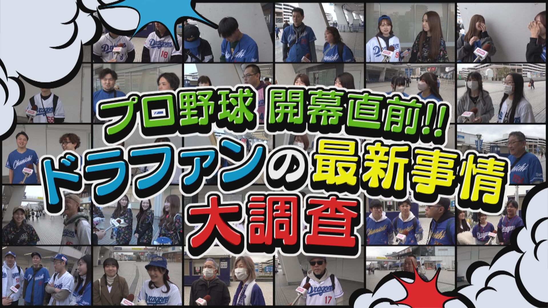 プロ野球 開幕直前!ドラファンの最新事情を大調査!! ドラファンに話を聞くため、オープン戦が行われたバンテリンドームと小牧市民球場で調査開始。 新人イケメン効果で女性ファンが急増!?グッズで推し活。新チャンテ(チャンステーマ)が大絶賛!(2025年3月26日放送「ドデスカ!」より)