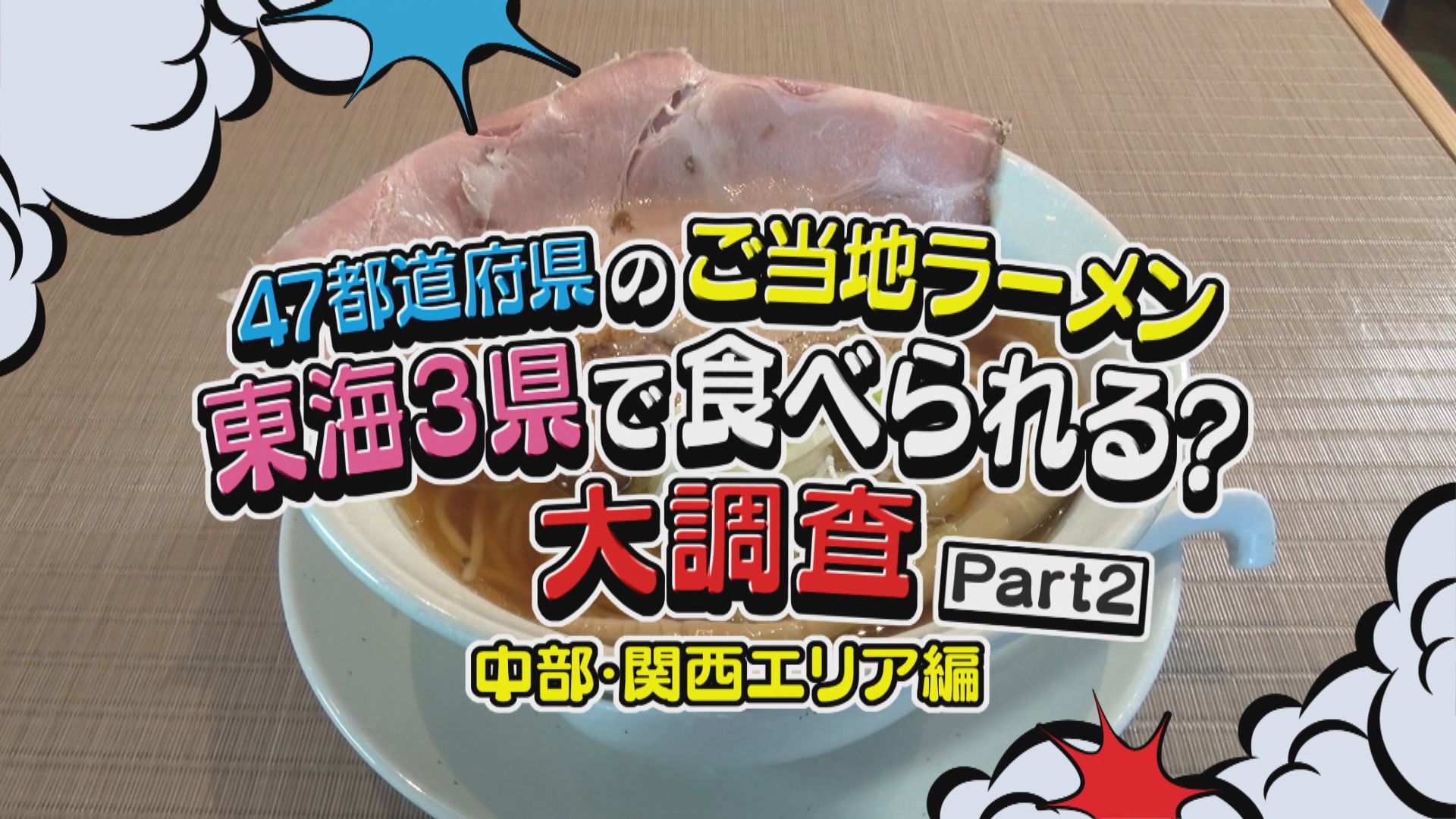 47都道府県のご当地ラーメンを東海3県で全部食べられる? 大調査の第2弾は「中部・関西エリア」です。 調査ルールは、「日本ご当地ラーメン一覧2024」を参考に、東海3県内にある店を探し、お店の人が「ご当地ラーメン」と言えばOK。 隠れ家的なお店からおしゃれなカフェまで、様々なお店のご当地ラーメンをご紹介します。 さらに「ドデスカ!」に出演の井戸田潤さんが「世の中で一番好きなラーメン」と激推しする名古屋のラーメンも! (2025年6月25日放送 メ~テレ『ドデスカ!』より)