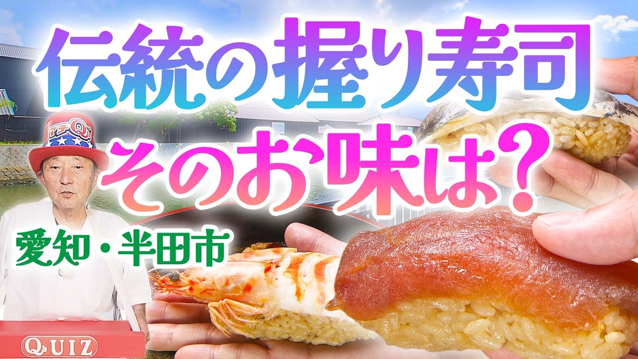 あなたのマチの魅力をクイズで紹介する「マチQ」、今回は愛知県半田市。 童話作家の新美南吉の故郷として知られ、市内には代表作「ごんぎつね」の姿があちこちに…。 さらに、半田市にはミツカングループの本社があるなど 江戸時代からお酢やしょうゆが盛んに造られ、約20軒の寿司店があることから「寿司のマチ」とも言われています。 「豊場屋 南店」では、江戸時代から食べられていた郷土寿司「尾州早すし」を再現し提供しています。 通常の寿司と比べ、驚きの大きさと味付けになっている尾州早すしをディレクターが試食すると…。