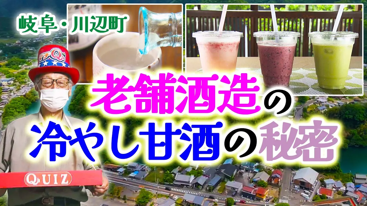 約7割を山林が占める自然豊かな岐阜県川辺町の特産品は地酒。江戸時代から続く老舗「平和錦酒造」でも遠見山のふもとにある南天の滝の水を使った日本酒や梅酒など訳40種類を販売。人気なのが「冷やし甘酒」。イチゴやブルーベリー、抹茶などいろいろな味がありますが、意外なのがコーヒーゼリーが入ったもの。社長の奥さんが、コーヒー好きという山登り客のリクエストに応えて、ちょうどその時作っていたコーヒーゼリーを入れたのが始まりなんだとか。番組スタッフがいただいたところ、甘酒の甘い味とコーヒーゼリーの苦みがマッチしてとても美味しかったです。酒蔵近くに4月にオープンした古民家カフェ「九兵衛」で味わえます。